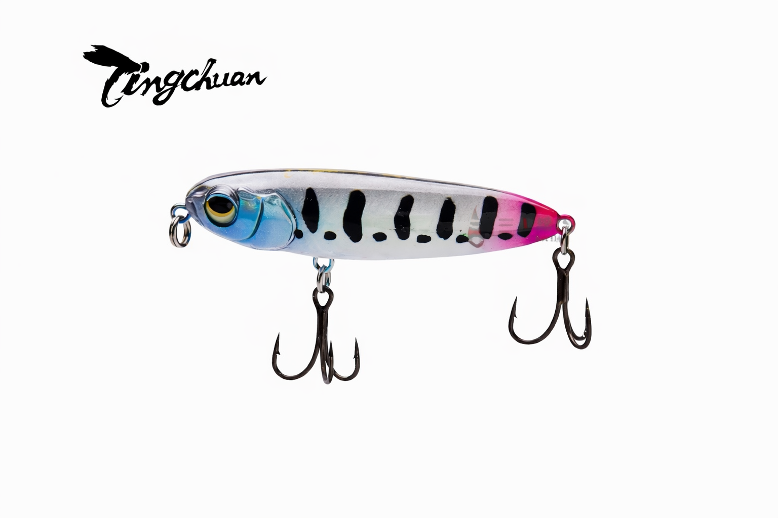 The TINGCHUAN Topwater Pencil Bait is designed for surface fishing with a classic walk-the-dog action that effectively triggers aggressive strikes from predatory fish.